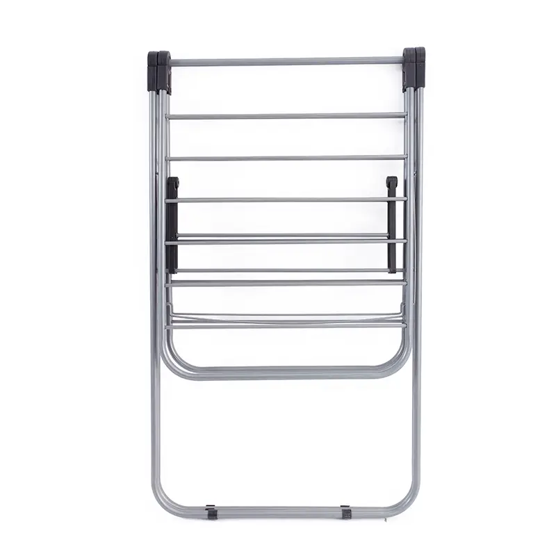 Su diseño de pie con ruedas 🚚 facilita la movilidad y permite colocarlo en cualquier espacio de tu hogar 🏠. Su estructura de 3 niveles proporciona amplio espacio para colgar diferentes tipos de prendas, con una capacidad de tendido de aproximadamente 17 metros 📏. Además, posee 2 barras laterales superiores ideales para colgar perchas o ropa delicada 👔.